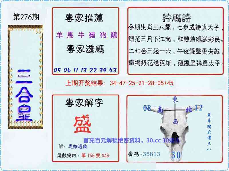 277期特码诗:今期六合出牛馬,穿金戴銀戴蘭花,綠藍特碼有錢拿,三申五令下聖旨。一三二八吉祥數,天蓬元帥保唐僧,太監陰險害忠良,本期看好二三肖。